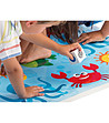 Tabla este impermeabilă și părinții au posibilitatea de a avea grijă de igiena ei. Astfel, jocul poate fi folosit atât în interior cât și în exterior.