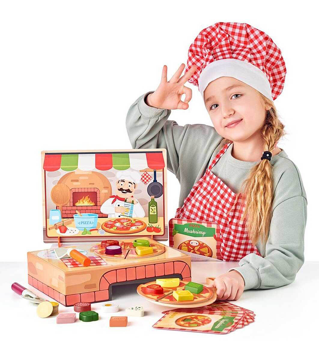 Sarcina copiilor este să poată distinge ingredientele corecte de rețeta pizza specifică.  Când este pregătită, se introduce la cuptor pentru coacere și pizza perfectă este gata de servit.
