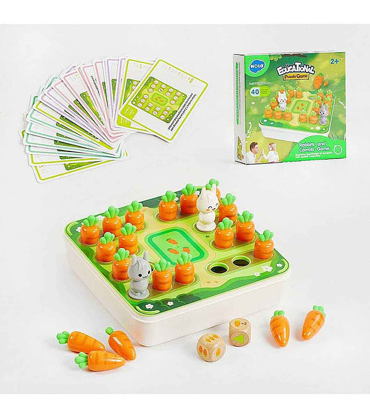 Copilului tău îi plac iepurașii? Vrei să-i faci o surpriză Ajută-l să adune toți morcovii? Joacă-te și distrează-te cu acest joc grozav, cu iepurași și morcovi. Setul are diferite provocări pentru care cei mici să le facă față. Copilul tău va putea să dezvolte diverse abilități în timp ce se joacă singur sau se distrează cu un părinte și un prieten. Aceste abilități îi vor ajuta pe copii la școală și în viață. Când copiii joacă jocuri de societate, învață să construiască strategii și să urmărească rezultatele alegerilor pe care le fac. Acest lucru îi va ajuta cu siguranță să învețe să privească lucrurile din unghiuri diferite și să gândească mai analitic. Jocul are 40 de niveluri pe care să le completeze copiii.