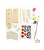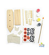 Setul include: lemn, vopsele, pânză, pensulă, lipici și autocolante.