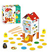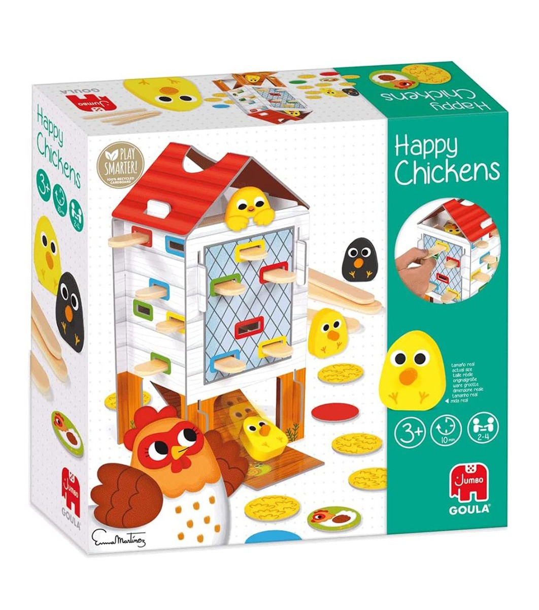 Goula Joc pentru copii Găini Fericite Scoateți găinile din cotețul de găini și faceți-le fericite. După asamblarea cotețului de găini cu puii, copiii trebuie să amestece jetoanele și apoi jocul poate începe.