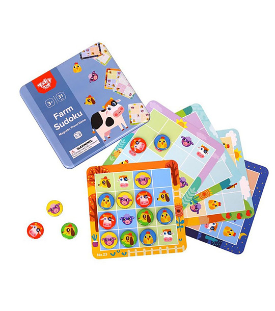 Tooky Toys Jocul Sudoku pentru copii cu ferma Îi plac copilului dumneavoastră animalele? Îi place să se joace? Vreți să învețe despre jocul Sudoku? Cu această versiune pentru copii a jocului Sudoku, copilul dumneavoastră va putea învăța numele animalelor, numerele și își va dezvolta, de asemenea, logica.