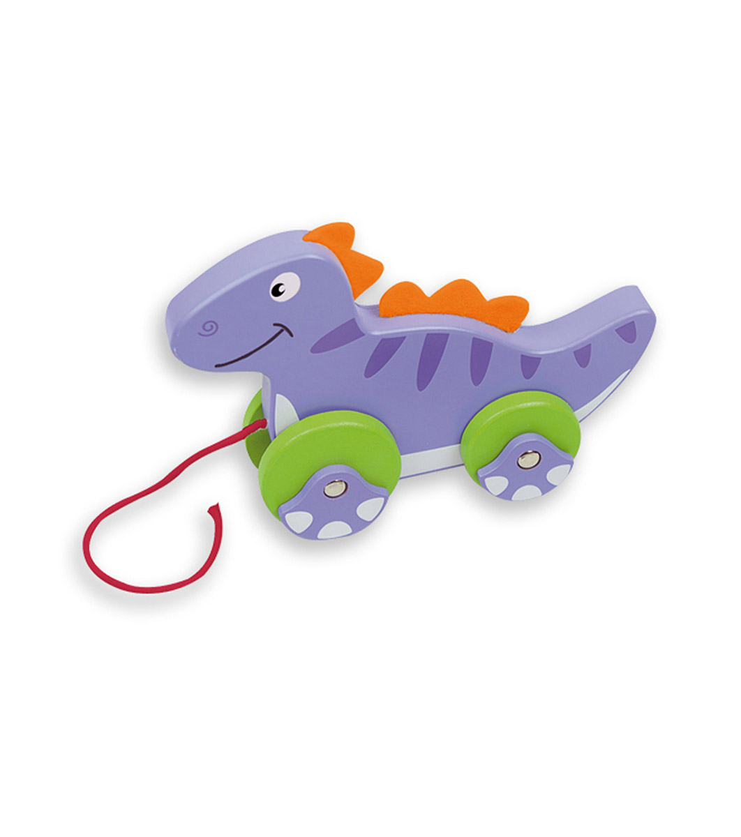Dinozaur de tragere din lemn masiv cu sfoară de tragere.