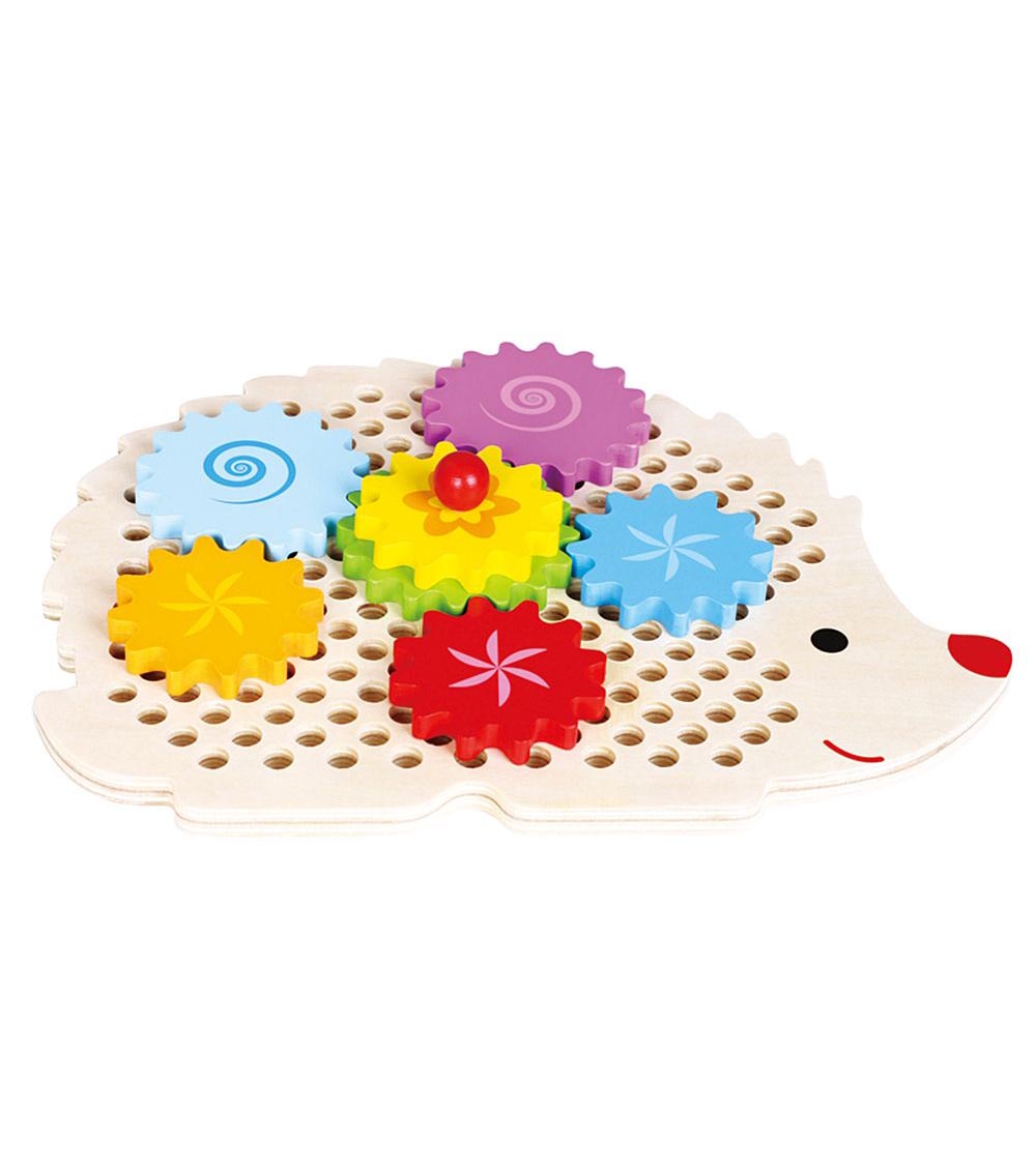 Roțile dințate colorate pot fi aranjate în multe moduri diferite pentru a se întoarce în același timp. Toate roțile au diametre și culori diferite. Când sunt aliniate corect, întoarcerea unuia le va întoarce pe celelalte. Setul contine: o bază din lemn cu orificii în formă de arici; 14 viteze; 3 ace de lemn. Jucăria va dezvolta abilitățile motorii fine, concentrarea și imaginația copilului dumneavoastră.