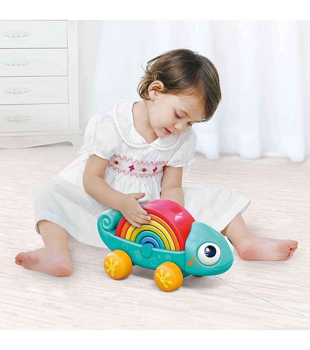 Jucărie de tragere pentru bebeluș. 2 în 1, Cameleon