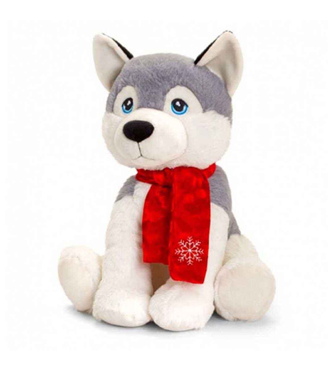 Keel Toys Jucărie ecologică de plus Husky cu eșarfă 25 cm Încântă-ți micuțul sau un prieten drag care a ținut copilul în el/ea, cu acest dulce, drăguț plyushko. Cu eșarfa lui roșie, ar completa perfect orice decor de Crăciun sau ar fi un complice indispensabil în magia Crăciunului.