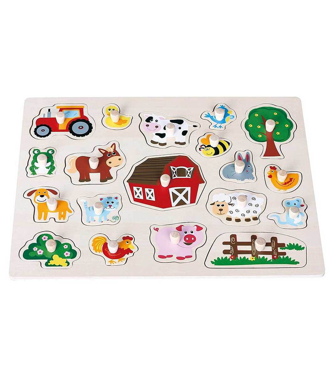Jucării Lelin, Puzzle din lemn cu mânere, fermă, dimensiune mare