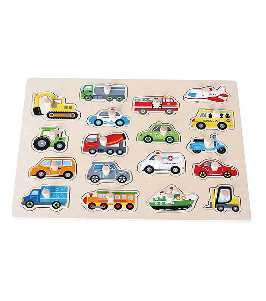 Jucării Lelin, Puzzle din lemn cu mânere, vehicule, dimensiune mare