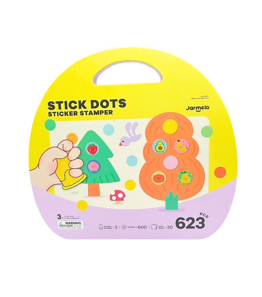 Kitul conține 20 de coli cu ilustrații diferite pentru aplicații cu stickere, peste 600 de stickere colorate și 3 mașini de imprimat stickere care adaugă un element suplimentar de joacă și surpriză. Fiecare coală prezintă o scenă unică pe care copilul o poate completa alegând stickerele potrivite și plasându-le în locurile potrivite - un exercițiu care dezvoltă concentrarea și coordonarea mână-ochi.
