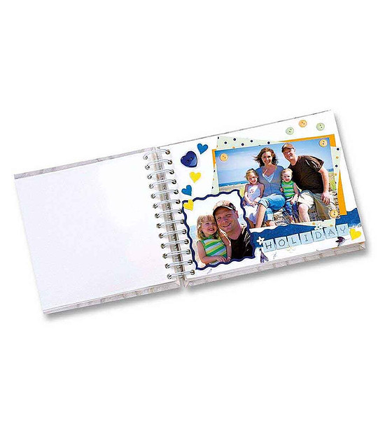 Folia Kit de albume de însemnări, Vacanță Un set pentru creativitate, aplicații și scrapbooking, potrivit pentru realizarea diverselor decorațiuni, precum și pentru albume foto unice Setul include: 3 buc. carton colorat - albastru închis, alb, galben;  1 buc. carton gofrat cu inimioare; hârtie de designer cu puncte colorate; 3 buc. hârtii subțiri de diferite texturi și culori; 2 buc. hârtie de grosime medie - portocaliu și albastru; diverse elemente decorative - panglici, nasturi, margele, pandantive etc.