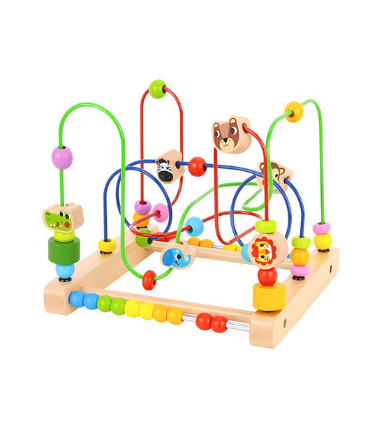 Avem o surpriză pentru copilul dumneavoastră. Îi va plăcea acest labirint din lemn cu un abac, există figurine din lemn care înfățișează animale din junglă. Un pui de leu, o zebra, o maimuta, un elefant, un urs si un crocodil iti vor incanta copilul in timp ce il misca prin labirint.