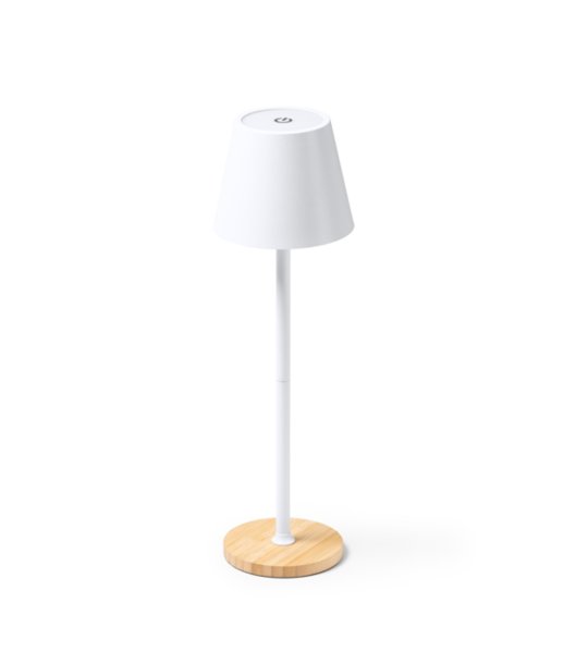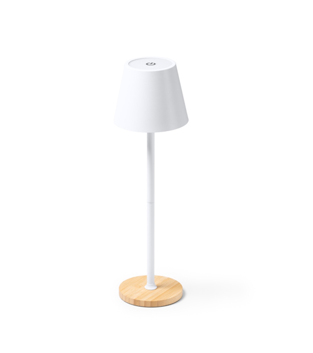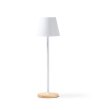 Stamina Lampă de masă BARROW albă cu 3 moduri LED Lampă cu corp metalic și bază din bambus.