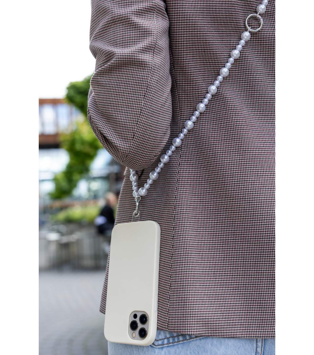 Lanț de telefon cu perle albe