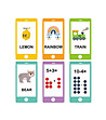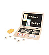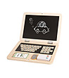 Arată ca un laptop adevărat. Are o tastatură cu cifre și litere, dar în același timp este și o tablă magnetică pe care poți aranja cuvintele și sarcinile din cele 30 de șabloane de cartonașe, și o tablă pe care poți desena sau scrie cu cretă colorată.