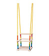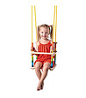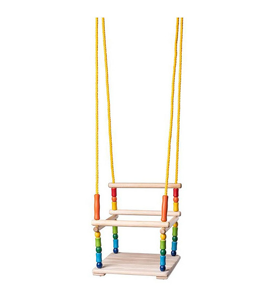 Leagănul este fixat în față și în spate, astfel încât copilul să se poată balansa în siguranță. Are un spătar confortabil pentru legănat mai confortabil Mărgelele colorate vor atrage atenția și îi vor încânta pe cei mici. La capătul lor superior, frânghiile se termină cu inele.