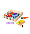 Acesta este un set interesant de legume din lemn și un cuțit pentru ca copilul dumneavoastră să învețe să taie cu un cuțit în siguranță. Morcovul, roșia, vinetele și ciupercile sunt doar câteva dintre legumele cu care copilul dumneavoastră le va avea la dispoziție pentru a se juca.