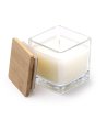 Lumânarea parfumată într-un bol de sticlă cu capac de bambus este o opțiune elegantă și ecologică pentru a crea o atmosferă caldă și primitoare în casa ta.