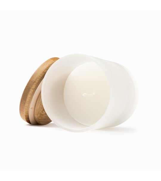 Lumânare parfumată din sticlă translucidă cu capac din bambus Parfum de vanilie