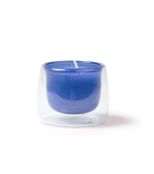 Lumânare parfumată într-un recipient de sticlă cu strat dublu.