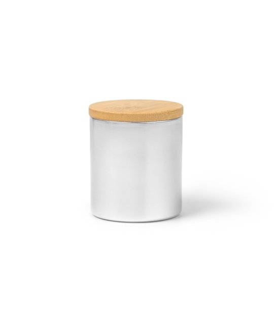 Stamina Lumânare parfumată în cutie argintie MARIS Lumânare parfumată cu înveliș metalic, recipient din aluminiu și capac din bambus