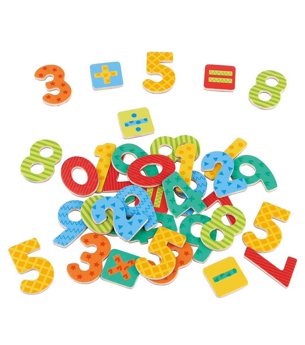 Setul conține 60 de elemente magnetice - numere și semne matematice în culori frumoase și strălucitoare. Sunt fabricate din lemn de înaltă calitate, cu margini netede și sigure pentru mânuțele mici. Datorită bazei lor magnetice, elementele pot fi ușor așezate pe o tablă magnetică sau în frigider, transformând învățarea într-un joc.