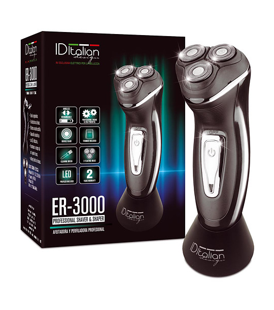 Aparat de ras profesional ergonomic, cu 3 capete de bărbierit și cu lamă dublă. Tehnologia wireless o face foarte flexibilă și ușor de utilizat.