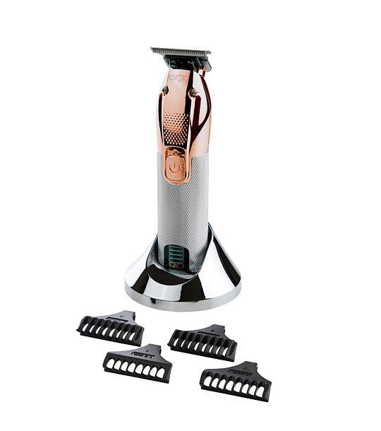 • Funcționează wireless, are un corp metalic cu nervuri și un cap în formă de T cu lame din oțel inoxidabil. Are două moduri de viteză: mică 5500 RPM și mare 6000 RPM.