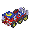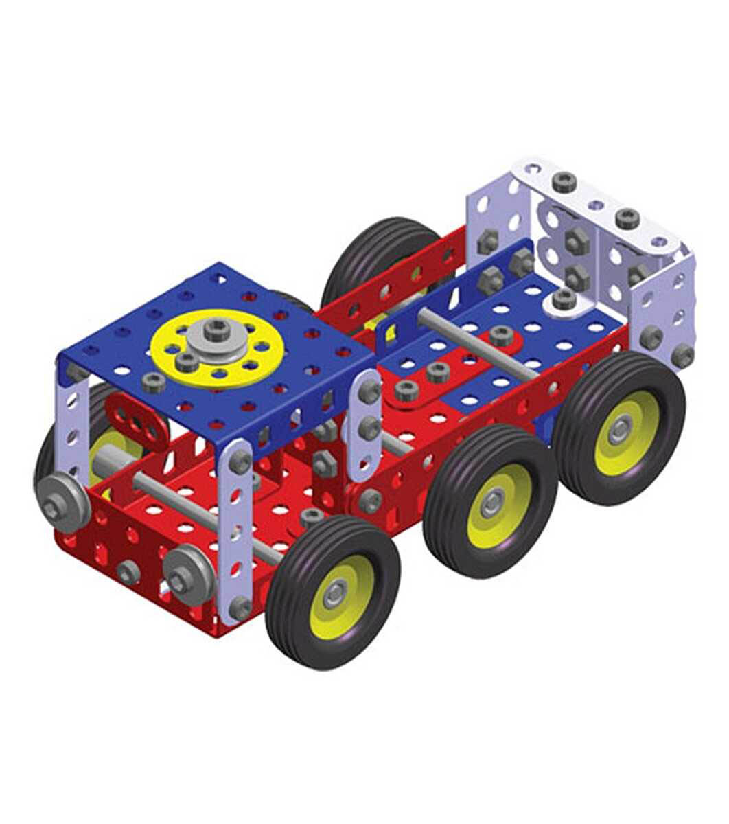 Un constructor de metal din 217 piese, cu care vor învăța cum să asamblate 10 camioane, folosind plăci, șuruburi și piulițe.