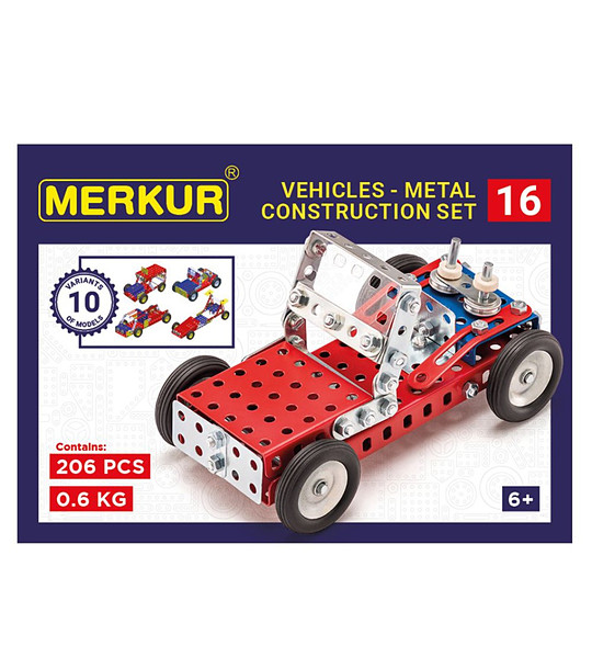 Merkur Merkur 016 Cărucior 10 în 1 205 piese Constructor metalic de 205 piese, cu care vor învăța cum să asambleze 10 modele de cărucioare, folosind plăci, șuruburi și piulițe.