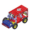 Constructor metalic de 205 piese, cu care vor învăța cum să asambleze 10 modele de cărucioare, folosind plăci, șuruburi și piulițe.