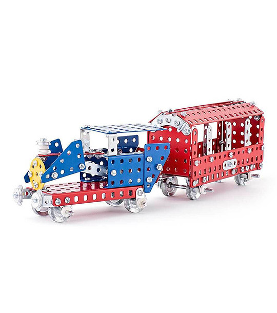 7-10 ani, peste 10 ani Un constructor metalic de 300 de piese, cu care vor învăța cum să asambleze 10 modele de tren, folosind plăci, șuruburi și piulițe. Micii designeri pot construi, de asemenea, un model după ideile lor, nu există limite pentru imaginație. O șurubelniță este inclusă în kit. Cutia contine instructiuni pentru asamblarea modelelor, cu poze, pas cu pas Brandul Merkur incurajeaza si sustine dezvoltarea copiilor si a capacitatilor lor - abilitati motrice si coordonare, abilitati motrice fine, planificare spatiala si gandire logica. 36 x 27 x 3 cm Materiale: metal si plastic Constructorul este destinat copiilor peste 6 ani.