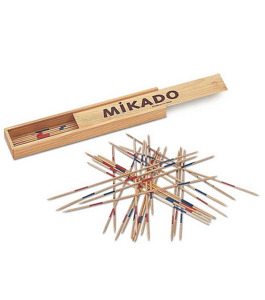 Cayro Mikado mare într-o cutie de lemn Îți vine să joci ceva familiar, distractiv, logic și să-i aduci pe toți în jurul mesei? Dacă răspunsul la întrebare este „Da”, acesta este jocul potrivit pentru tine și prietenii tăi. Jocul începe cu toate bilele împrăștiate pe o suprafață plană. Unul dintre jucători le adună în mână, le așează vertical pe suprafață și le eliberează brusc, astfel încât să se împletească. Poti arunca betisoarele si pe orizontala, incercand sa formeze un cerc. Primul jucator trebuie sa scoata un bat din gramada, avand grija sa nu ridice sau sa miste celelalte betisoare, deoarece acest lucru le va face sa-si piarda randul. Dacă se descurcă bine, câștigă ocazia de a trage mai multe bețe. În acest fel, toți jucătorii se pe rând până când stick-urile sunt completate. Jucătorii au dreptul de a folosi ambele mâini sau de a folosi stick-ul deja scos ca ajutor. Dar nu uitați că fiecare stick, în funcție de culoarea sa, are un număr diferit de puncte. După finalizarea întregului joc, fiecare participant strânge punctele din stick-urile scoase, le adună și determină câștigătorul. Desigur, acesta este participantul care, prin diligența sa, a strâns cele mai multe puncte.