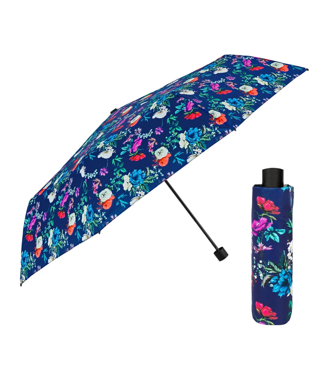 Perletti Mini umbrelă pliabilă albastră cu imprimeu floral Umbrelă compactă