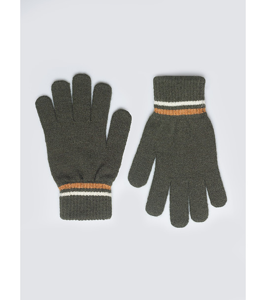 Big Star Mănuși bărbătești verzi cu dungi Mănuși bărbătești tricotate cu manșetă elastică.