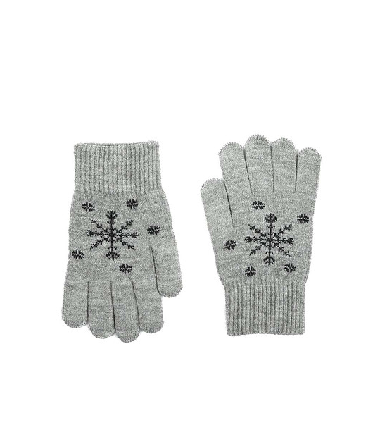 Mănuși gri pentru copii Snow Star cu imprimeu în negru