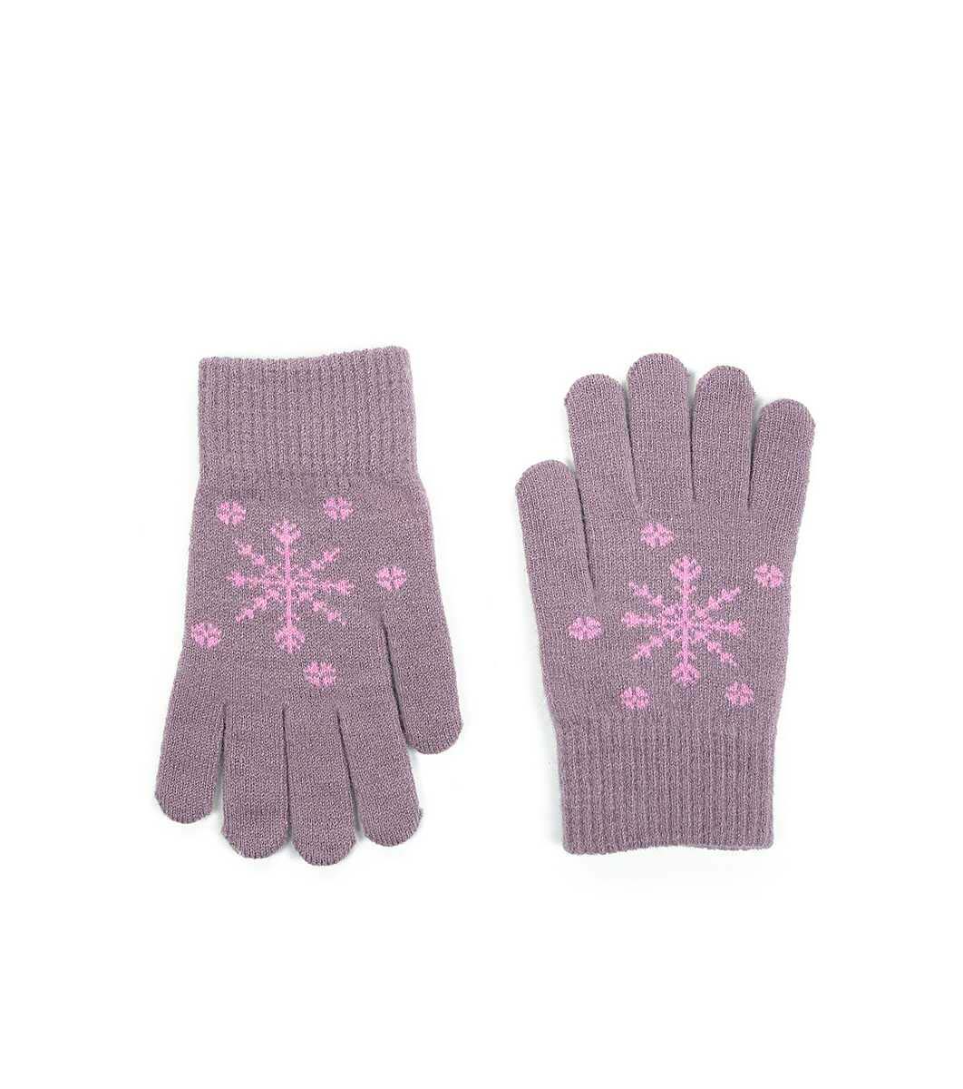 Mănuși pentru copii Snow Star cu imprimeu violet în roz