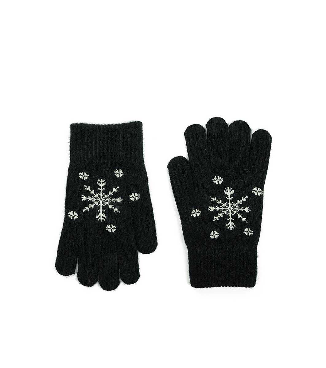 Mănuși pentru copii Snow Star negre cu imprimeu ecru