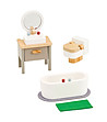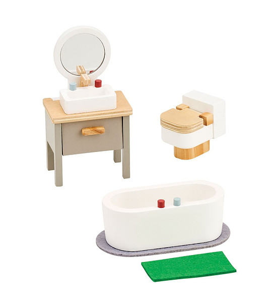 Lelin Toys Mobilier de baie din lemn Completați casa de păpuși cu frumosul și elegantul set de mobilier de baie din lemn Lelin Toys! Acest set fermecător, cu un design realist, va inspira copilul să-și aranjeze, să decoreze și să-și creeze propriile povești, dezvoltându-și imaginația și simțul estetic. Setul include 5 părți, atent lucrate și colorate în tonuri moi, moderne: dulap de baie cu chiuvetă și oglindă; toaletă; cadă; preș. oglindă.