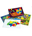 Conține 5 foi magnetice colorate și 1 albă (față și spate) cu dimensiunile 190 x 290 mm, 10 modele în miniatură, 28 de magneți moi în 4 culori.