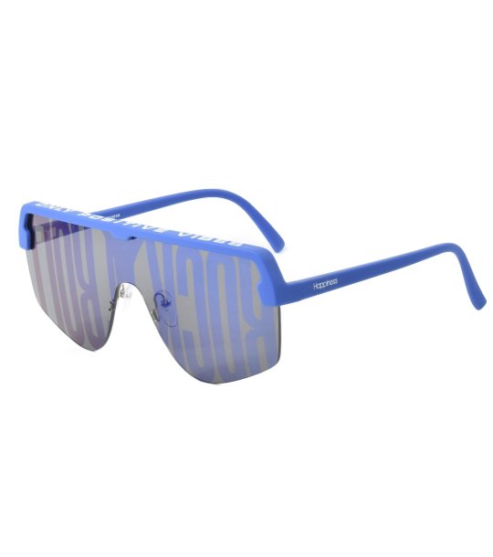 Ochelari de soare unici cu ramă uni și inscripții pe lentile. Brațe și rame din acetat.