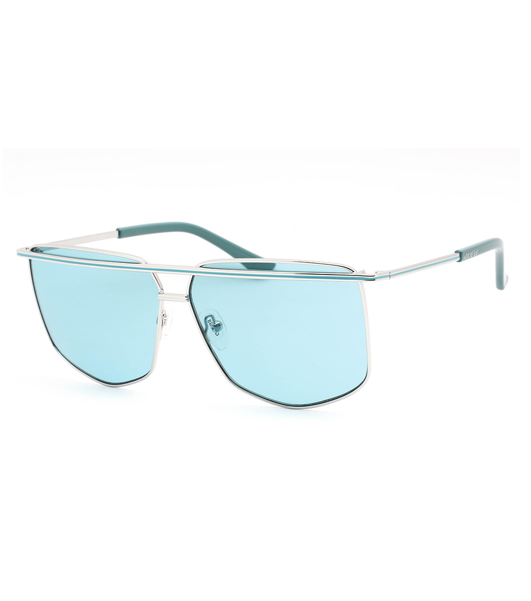Guess Ochelari de soare argintii pentru femei cu lentile albastre deschise Rame și mânere metalice