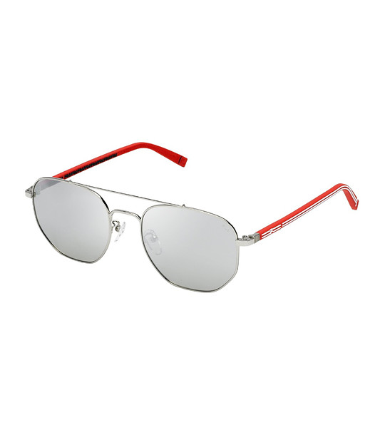 Ochelari de soare bărbătești argintii cu mânere roșii