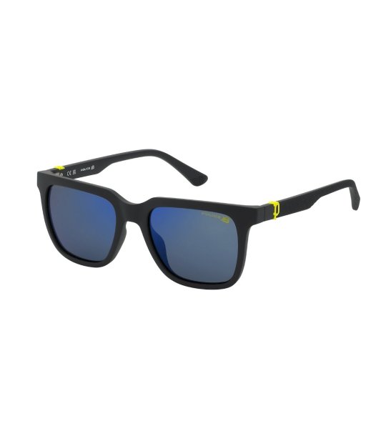 Ochelari de soare bărbătești moderni cu lentile oglindite. Produsul include o lavetă de curățare și este ambalat în ambalaj cu sigla companiei.