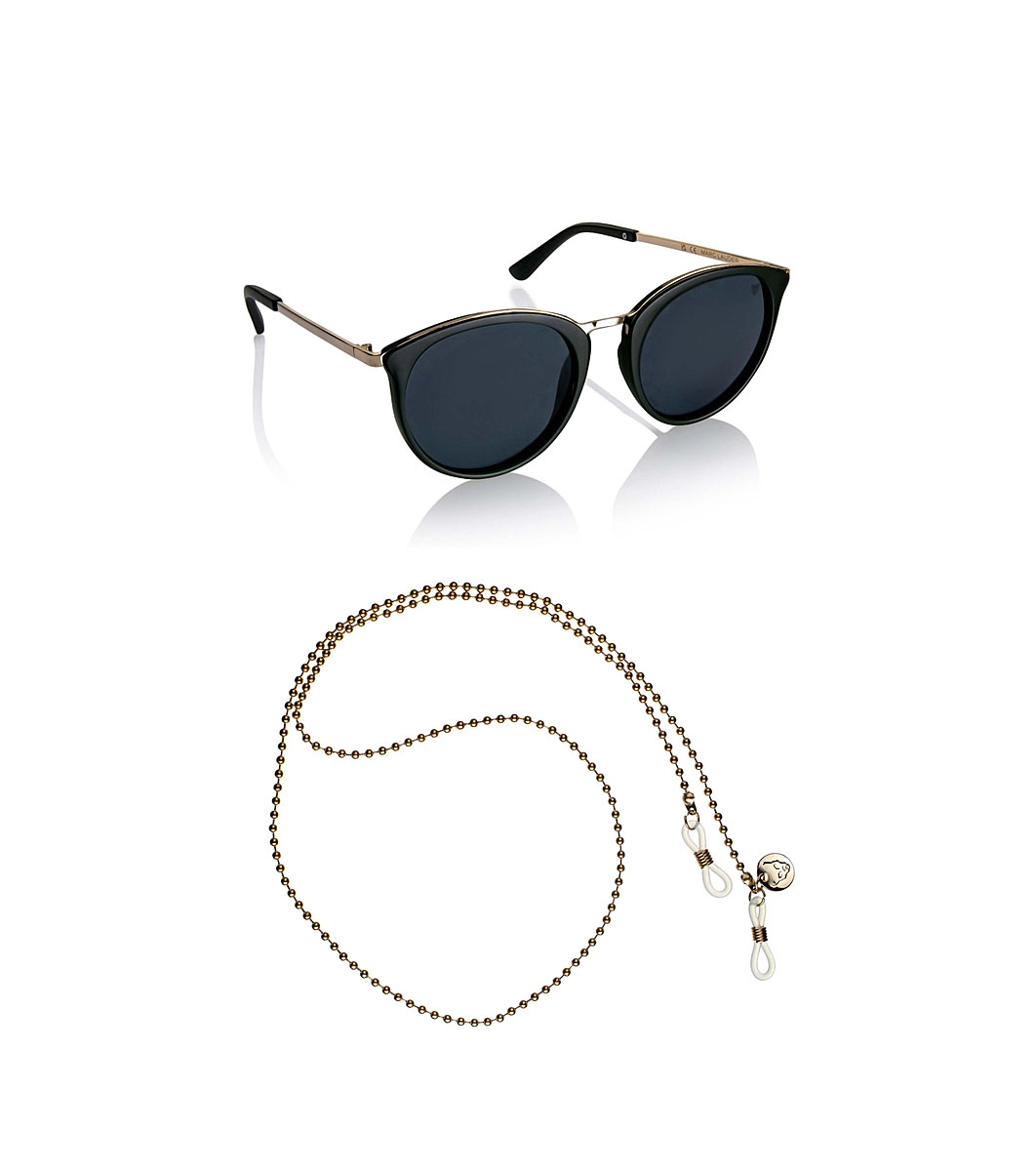 Ochelari de soare cu lanț negru Serenity cu rame aurii