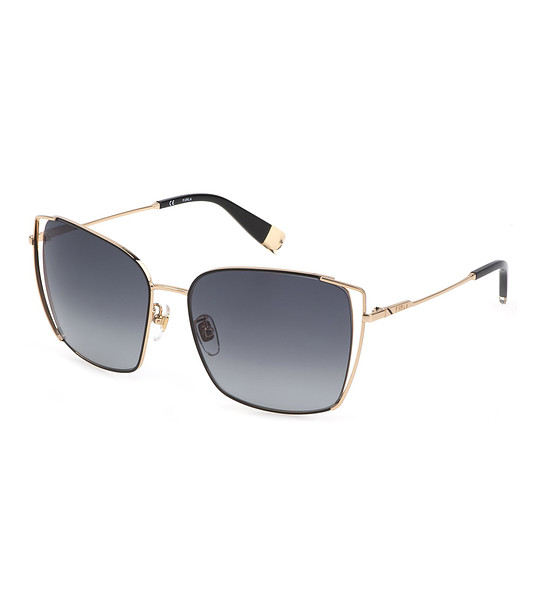 Furla Ochelari de soare de damă aurii cu un design spectaculos Rame și mânere metalice