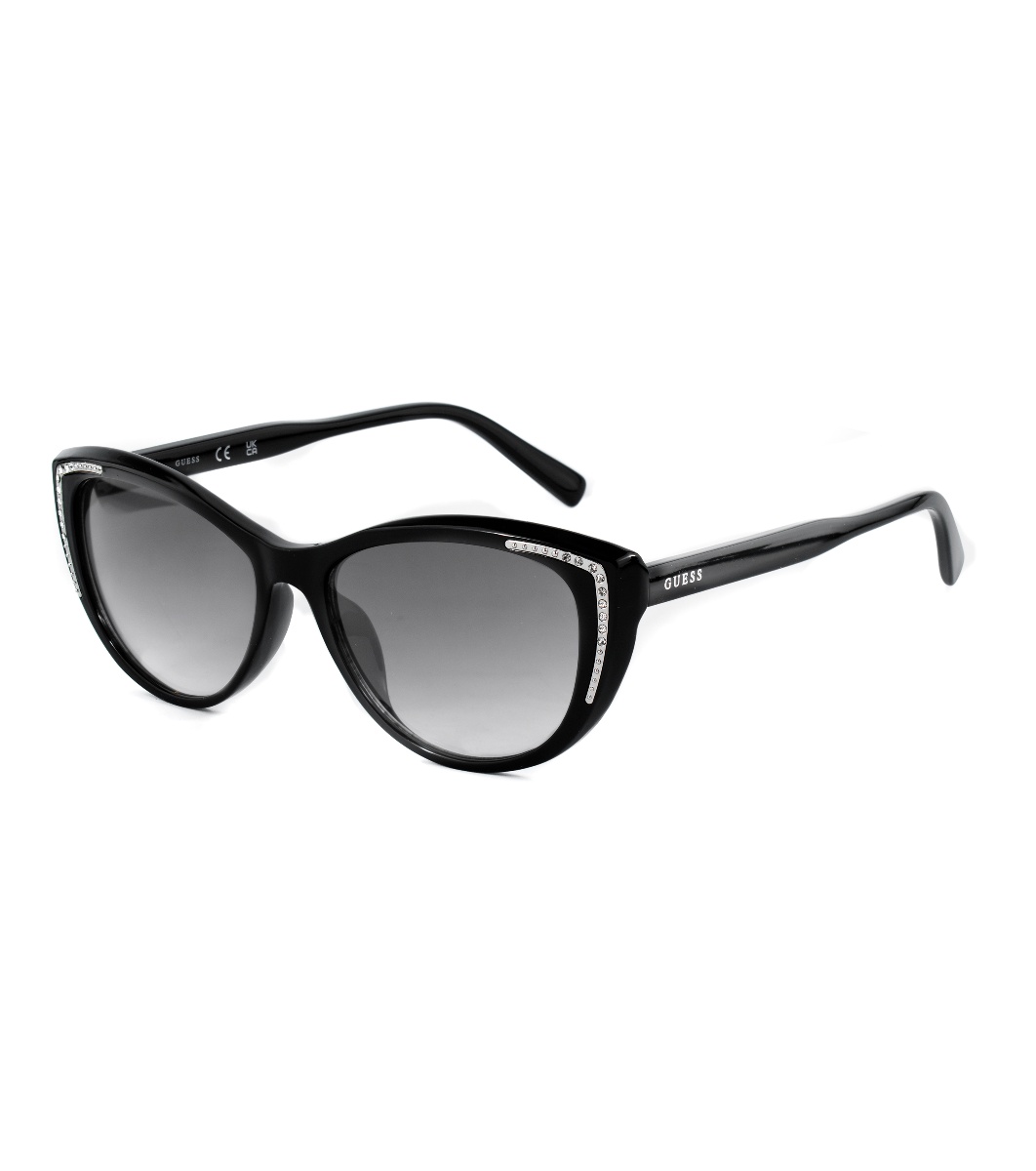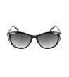 Ochelari de soare eleganți de damă cu o formă modernă și elemente decorative pe ramă.