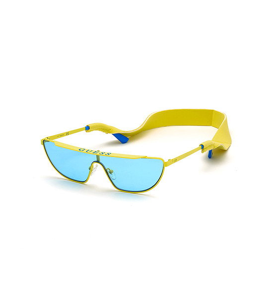 Guess Ochelari de soare galbeni pentru femei cu lentile albastre