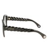 Ochelari de soare eleganți pentru femei, cu ramă elegantă și design unic al brațelor.