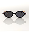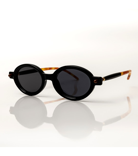 Ochelari de soare ovali negri pentru femei cu brațe de culoare havana