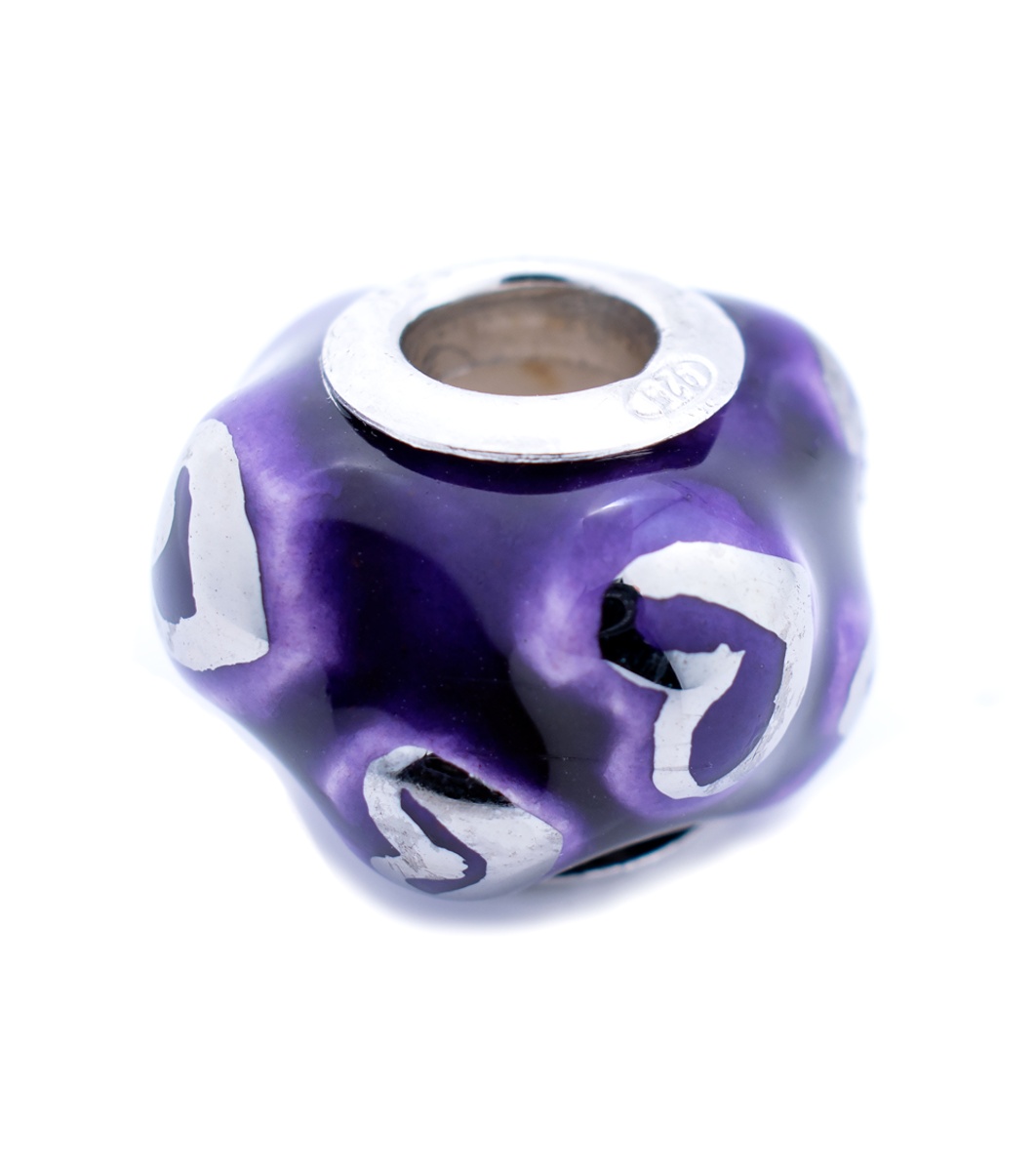 Un element decorativ rotund conceput pentru brățări. Are o suprafață netedă cu detalii ondulate.